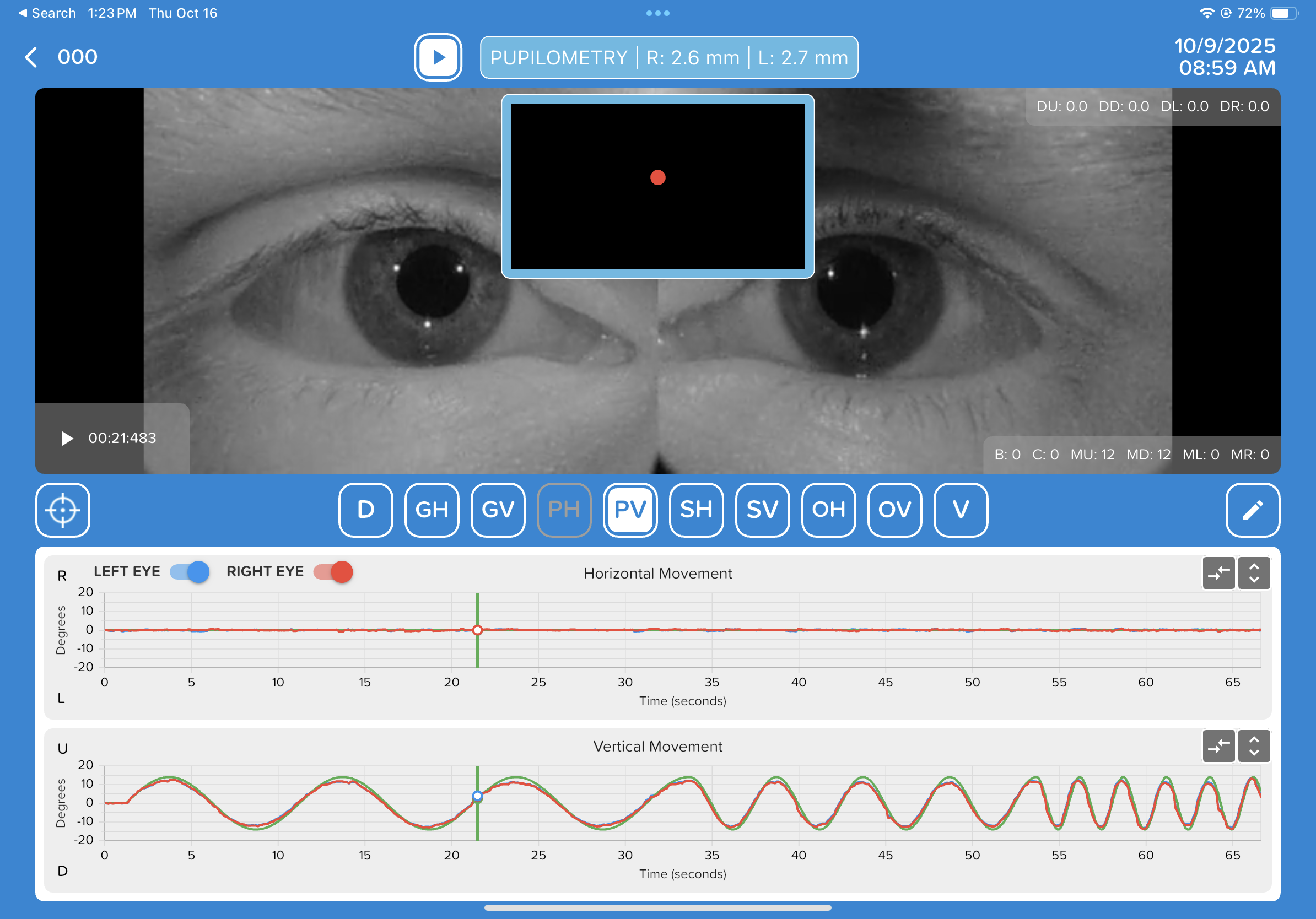 Videooculography (VOG) is among the most sensitive diagnostic tools in clinical neuroscience, providing quantitative data on central and peripheral oculomotor control.